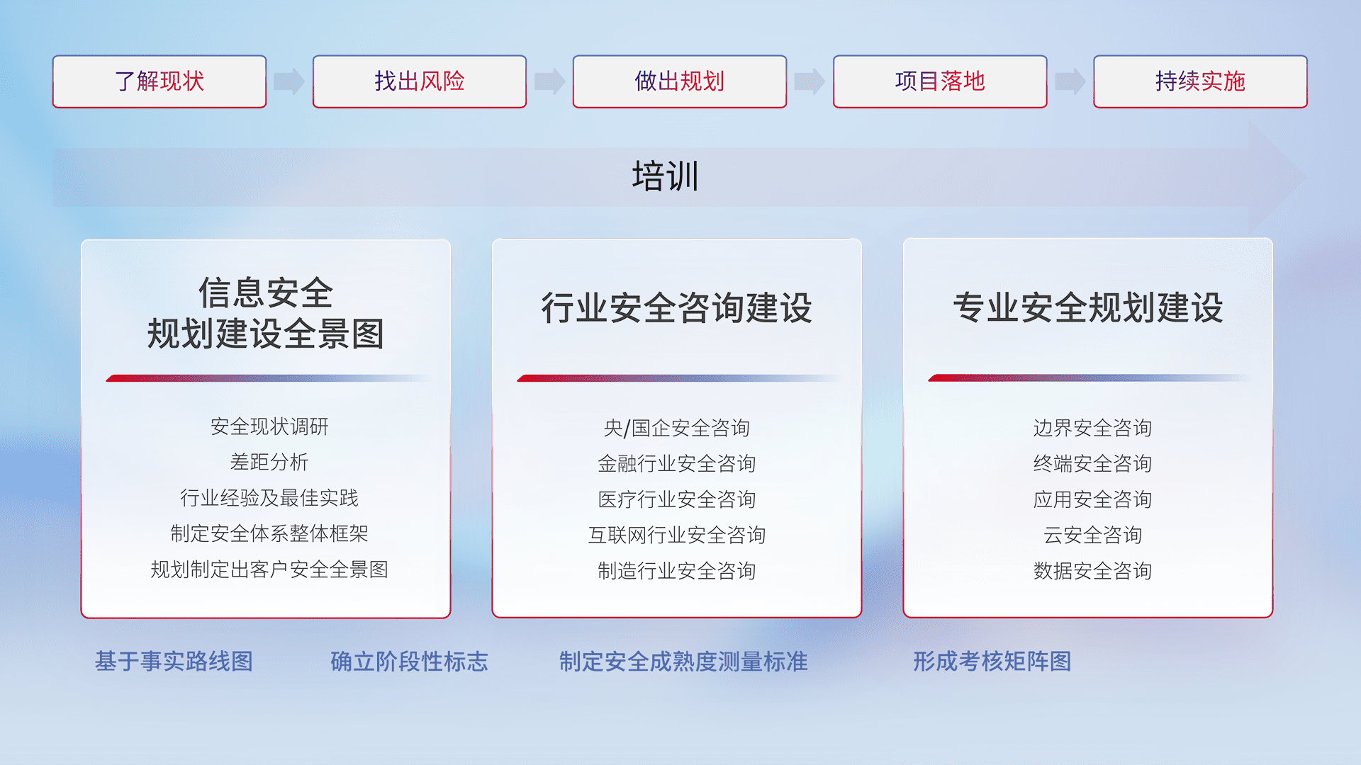 针对客户行业特性,,,将宏观的安全战略和需求,,,通过专业的交付服务,,,实现项目落地,,为客户提供标准规范的集成交付服务。。。
