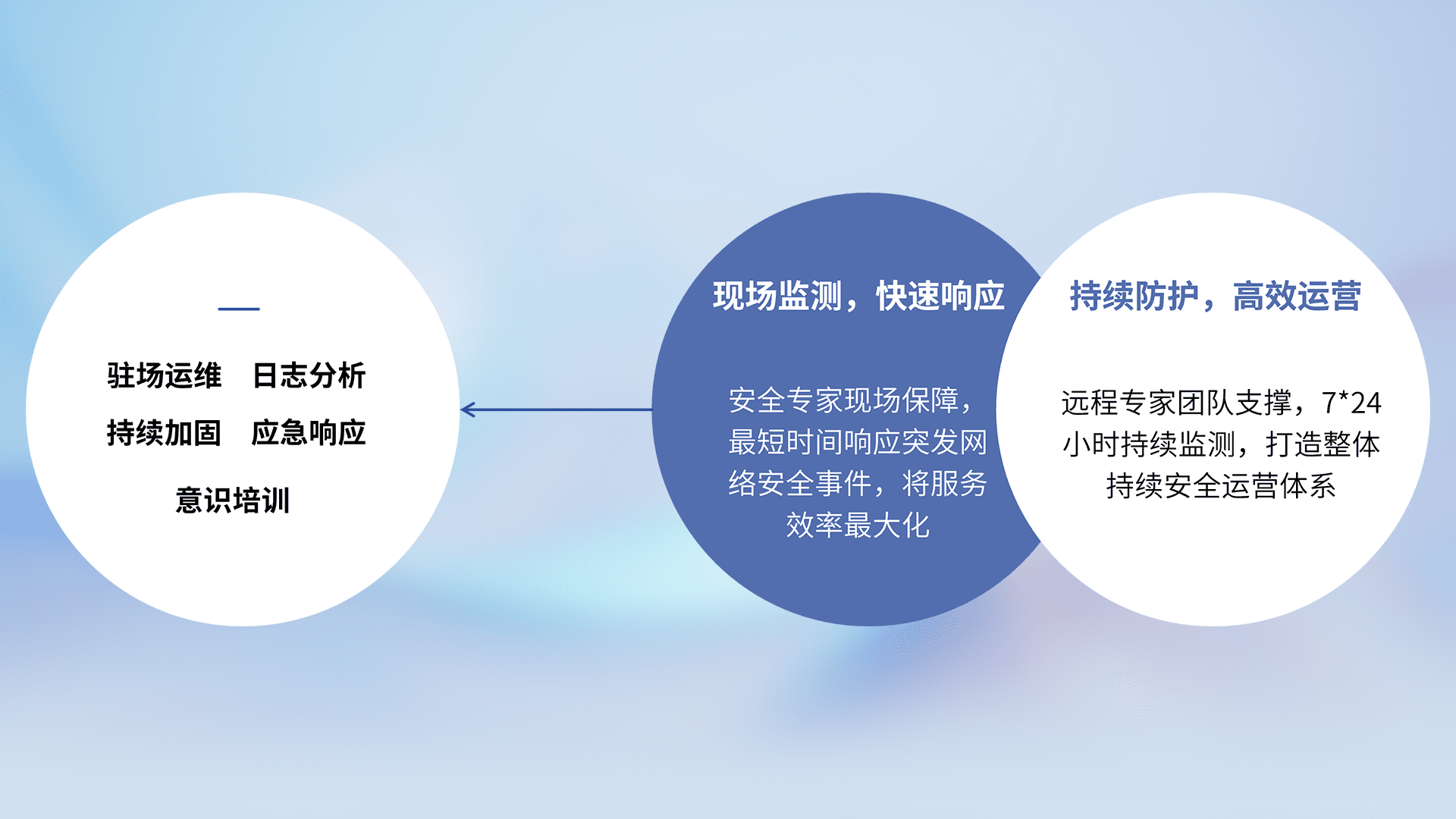 7X24小时持续监测安全事件,保持安全策略有效性,降低资产脆弱性风险,,,,精准拦截黑客攻击,,,减少被黑客利用的机会,,,,第一时间遏制,,,降低损失。。。。